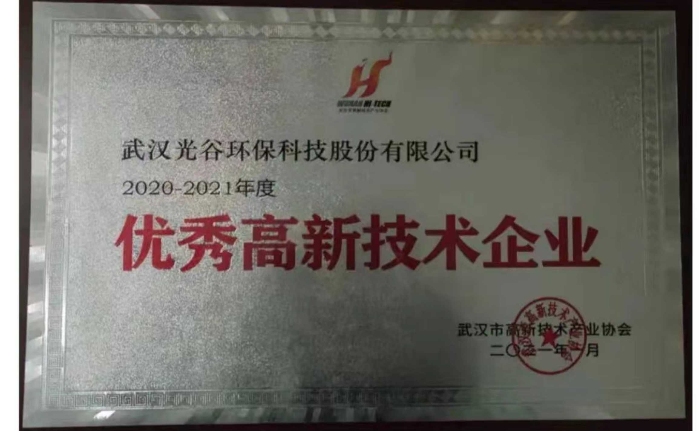 光谷環(huán)保獲評“優(yōu)秀高新技術(shù)企業(yè)”